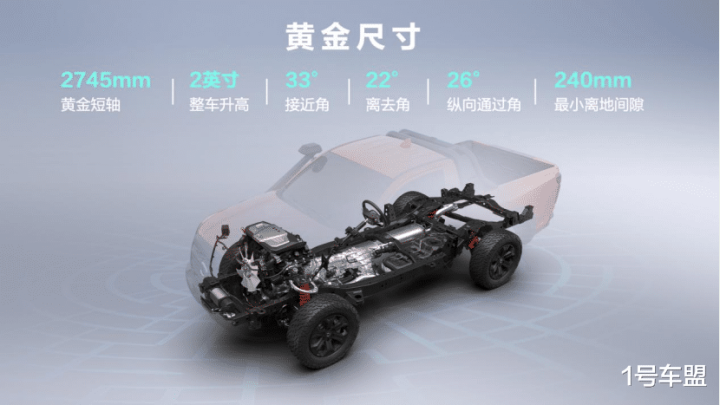 辅以原厂自带的2英寸升高套件,通过性能更强,升高后接近角达33°、离去角22°、纵向通过角26°,最小离地间隙240mm,基本能轻松应对大部分的越野场景,过炮弹坑路面时,车身不会轻易“托底”;雪地行驶时,接地比压低,轮胎抓地力更稳,不会出现“甩尾”风险。